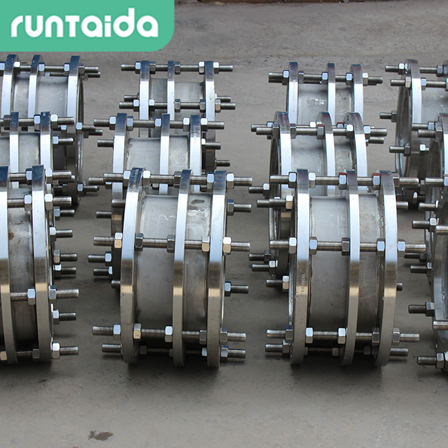 該裝置簡單方便,閘閥裝置方便,可接受管道的軸向拉力.金屬和密封圈嚴(yán)格按照應(yīng)用性能和客戶要求選擇不同級別的不銹鋼.各部分的連接螺栓由高強(qiáng)度碳鋼或不銹鋼制成.由于它與彈性管之間有一定的間隙,因此它具有一定的軸向和徑向位移.